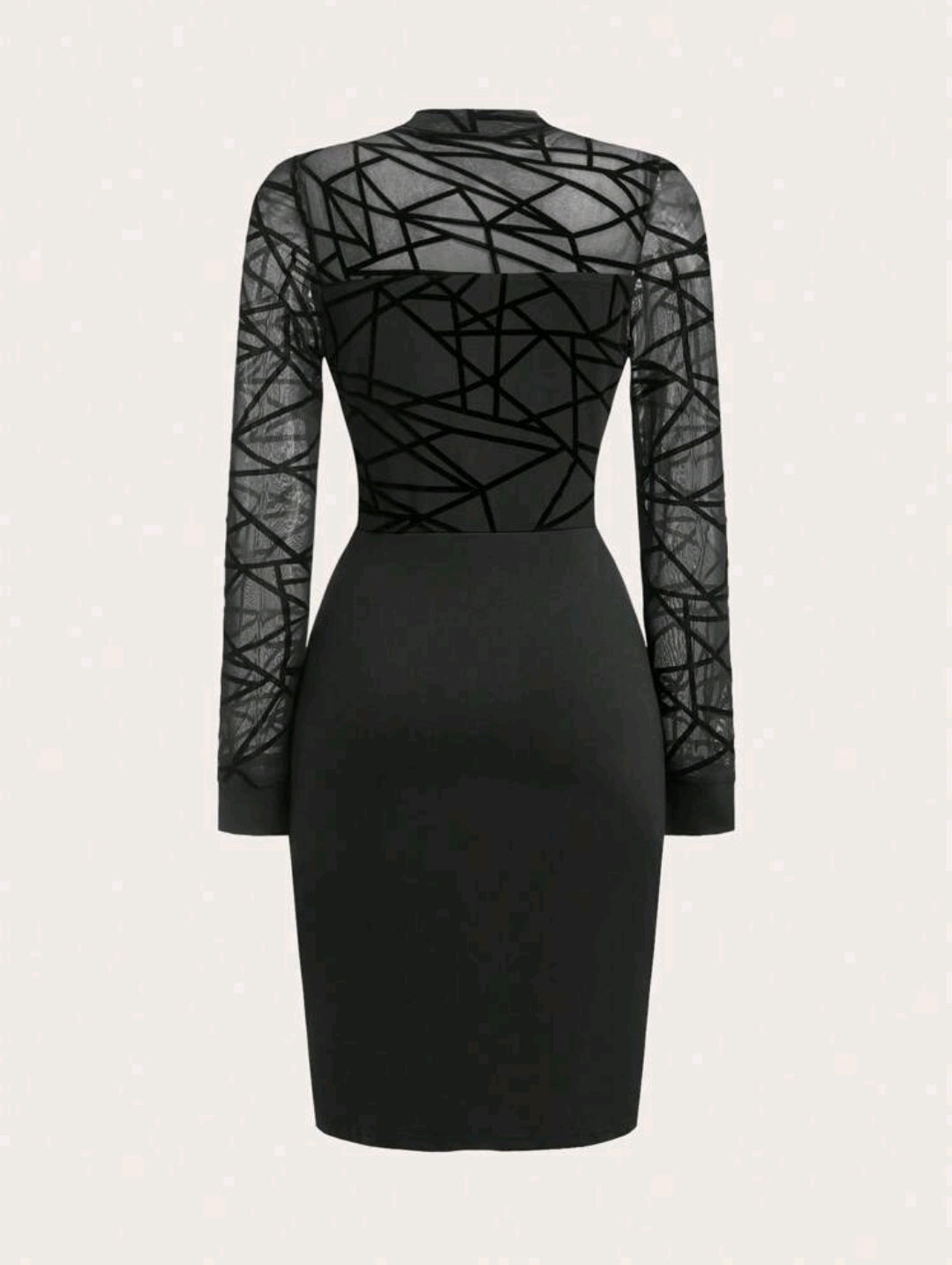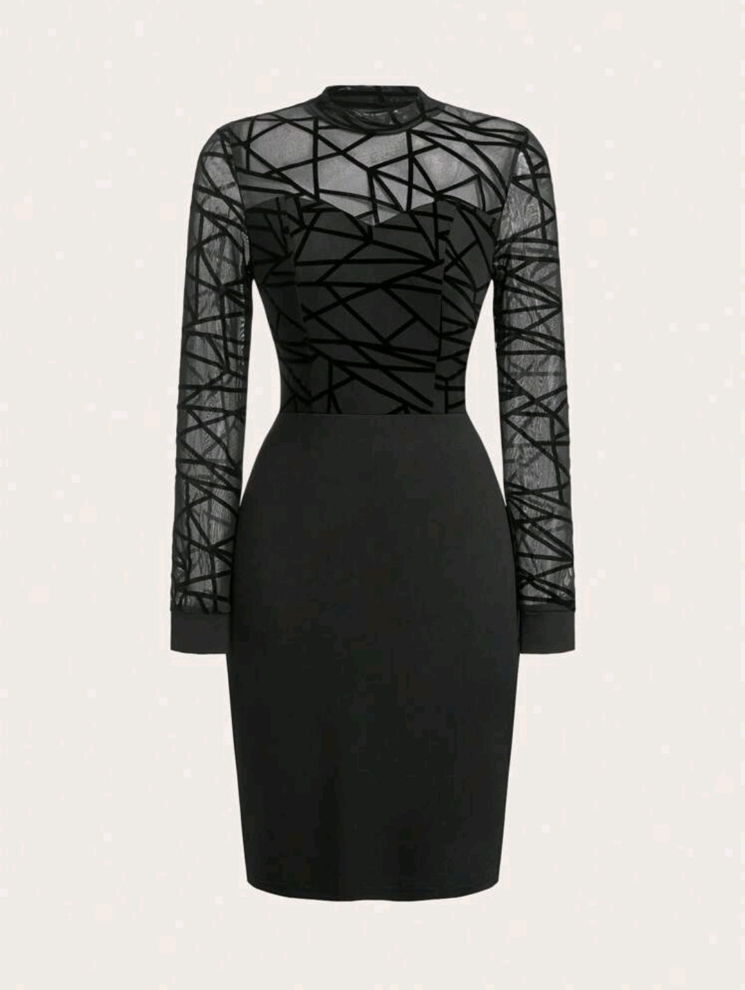 فستان أسود ضيق بأكمام طويلة من الشبك خريف/شتاء