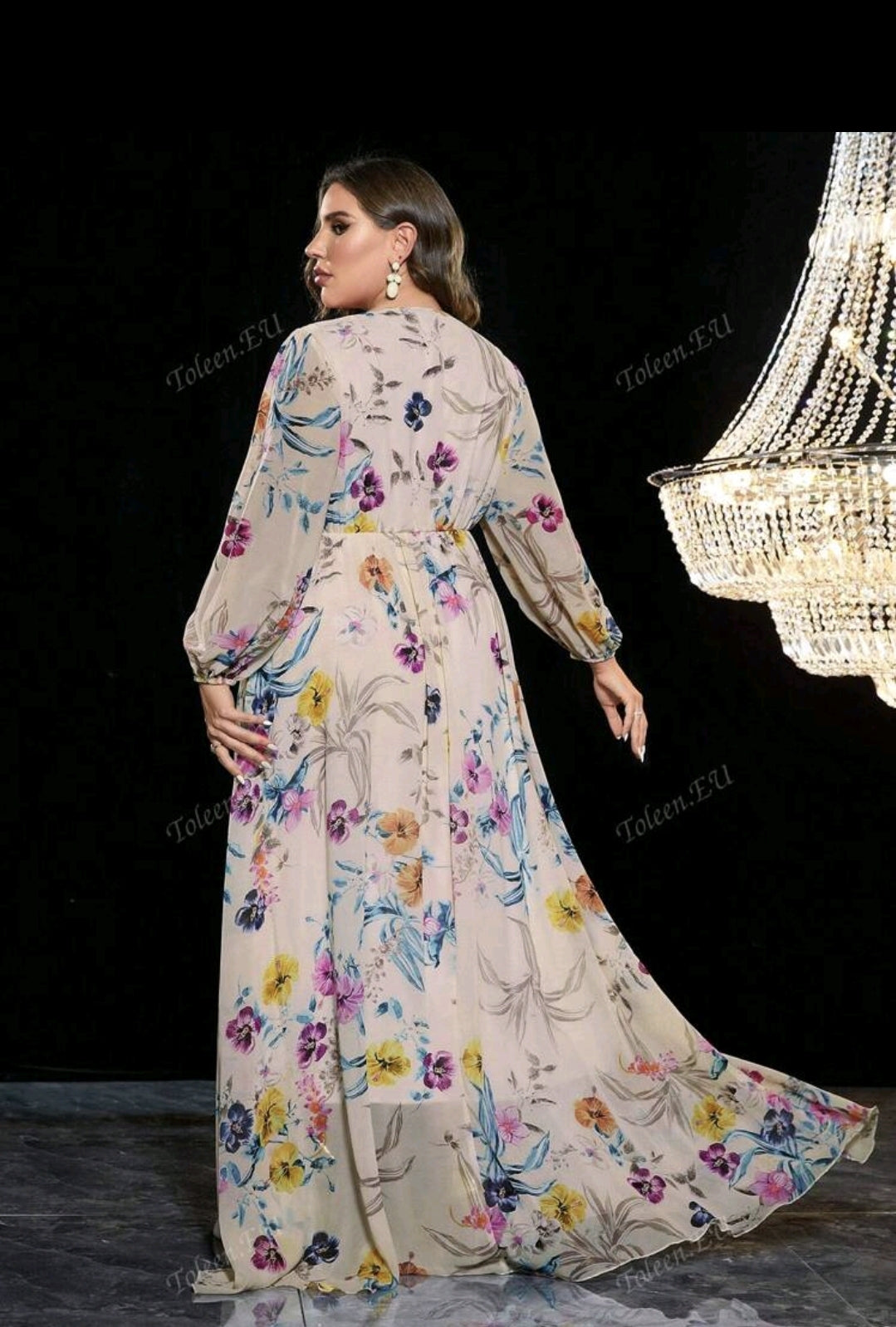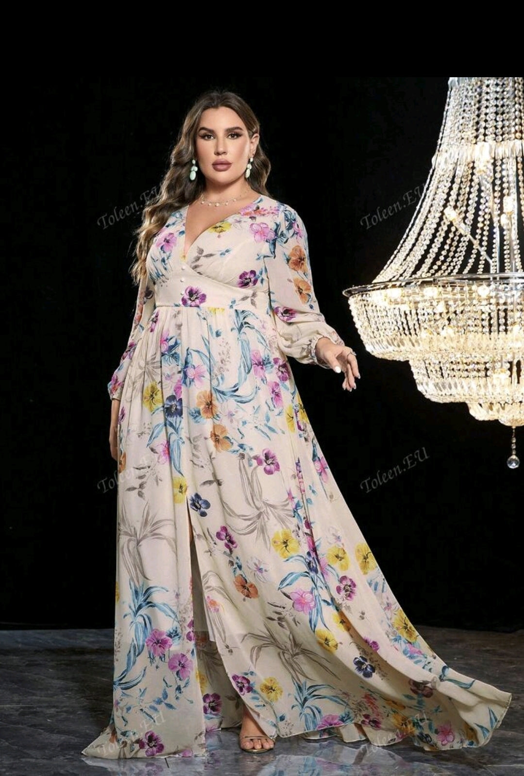 فستان أنيق بفتحة رقبة على شكل حرف V و أزرار ونقشة زهور