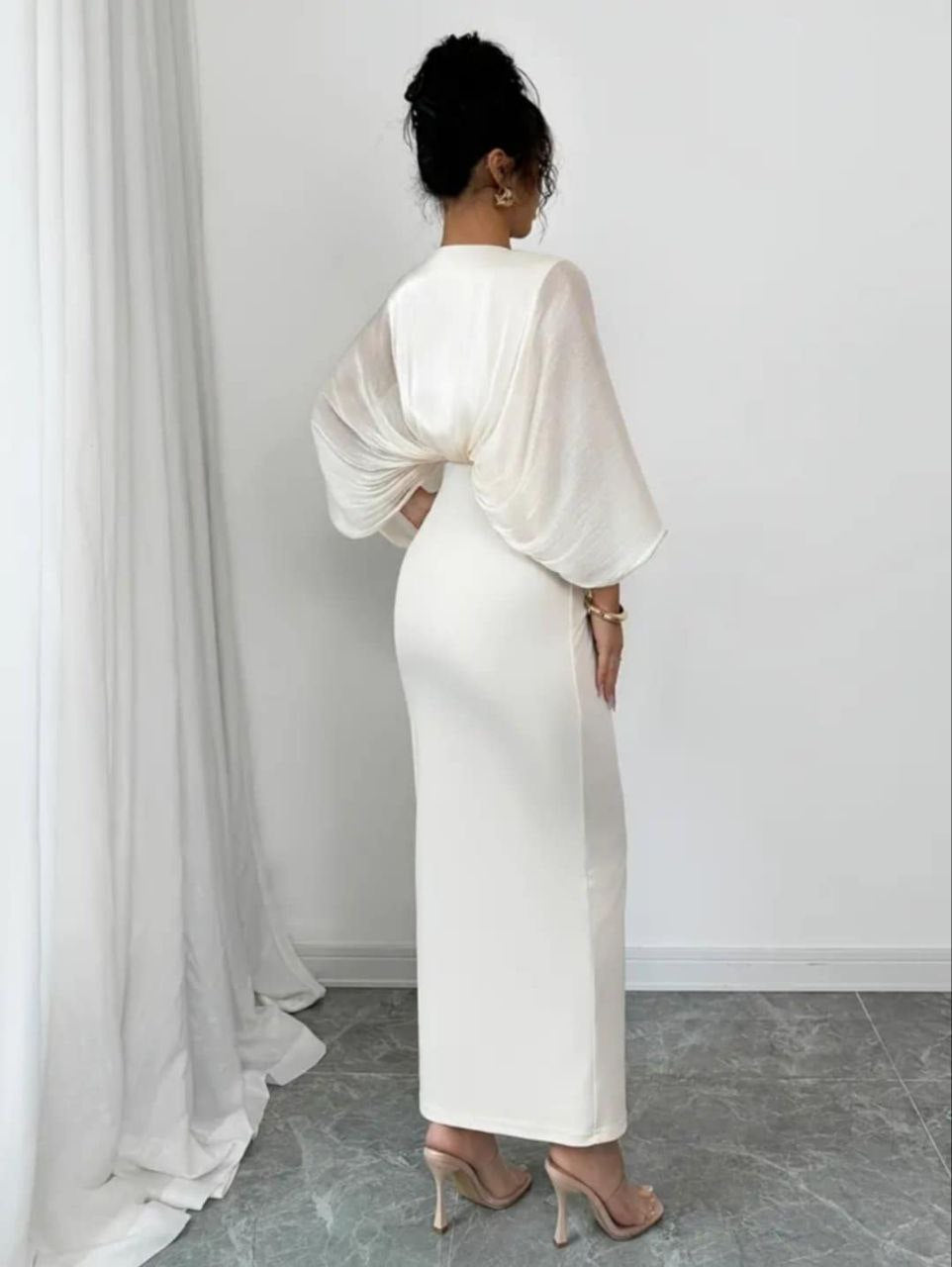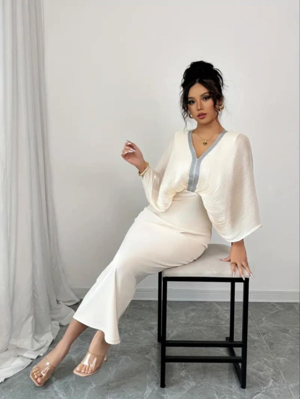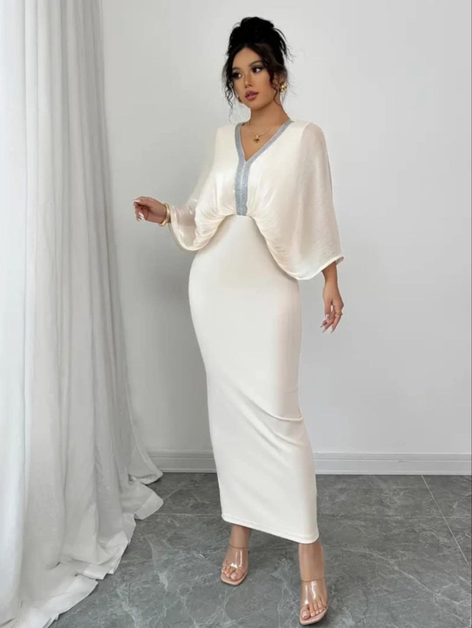 Vفستان أنيق من الفولار المرقّع بالترتر وفتحة رقبة على شكل حرف