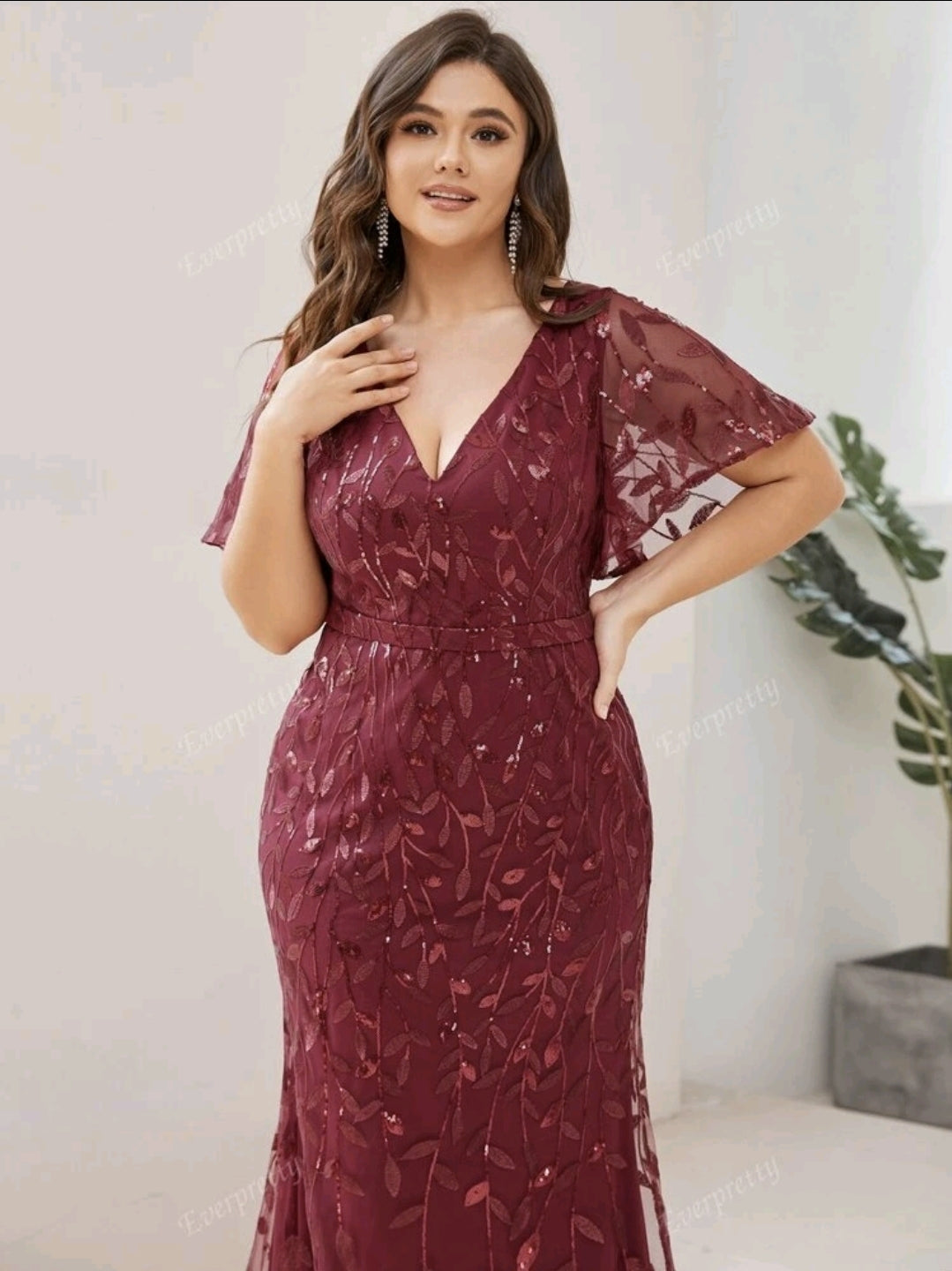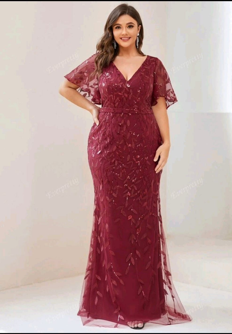 فستان سهرة أحمر مع لمسات شبكية مطرزة بالترتر