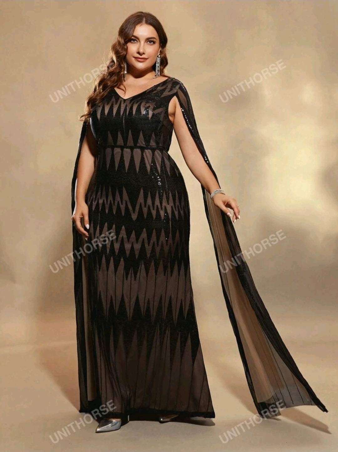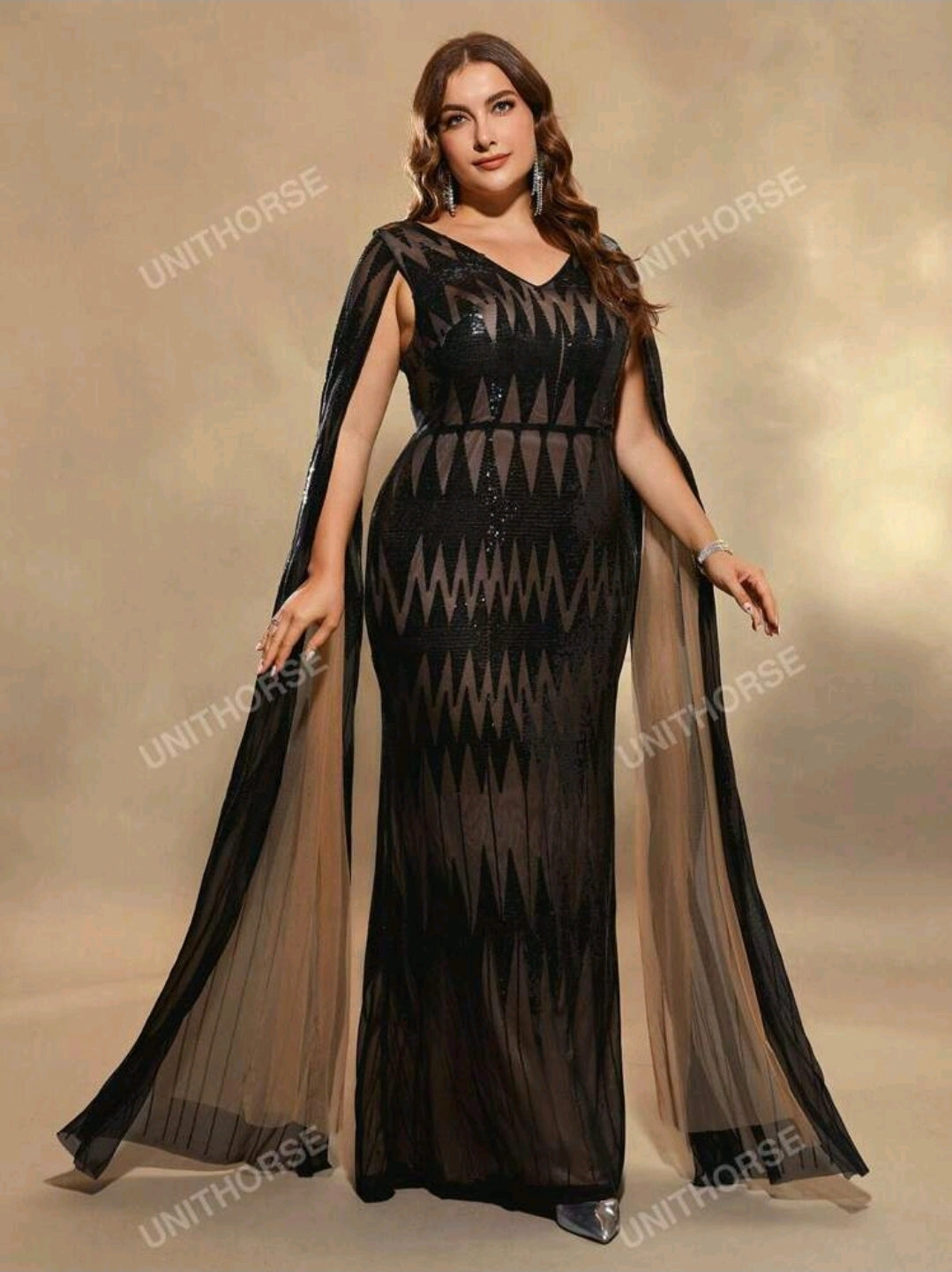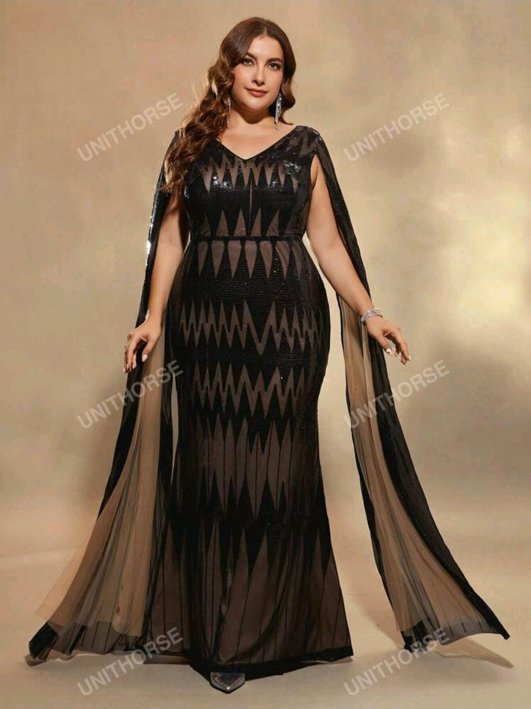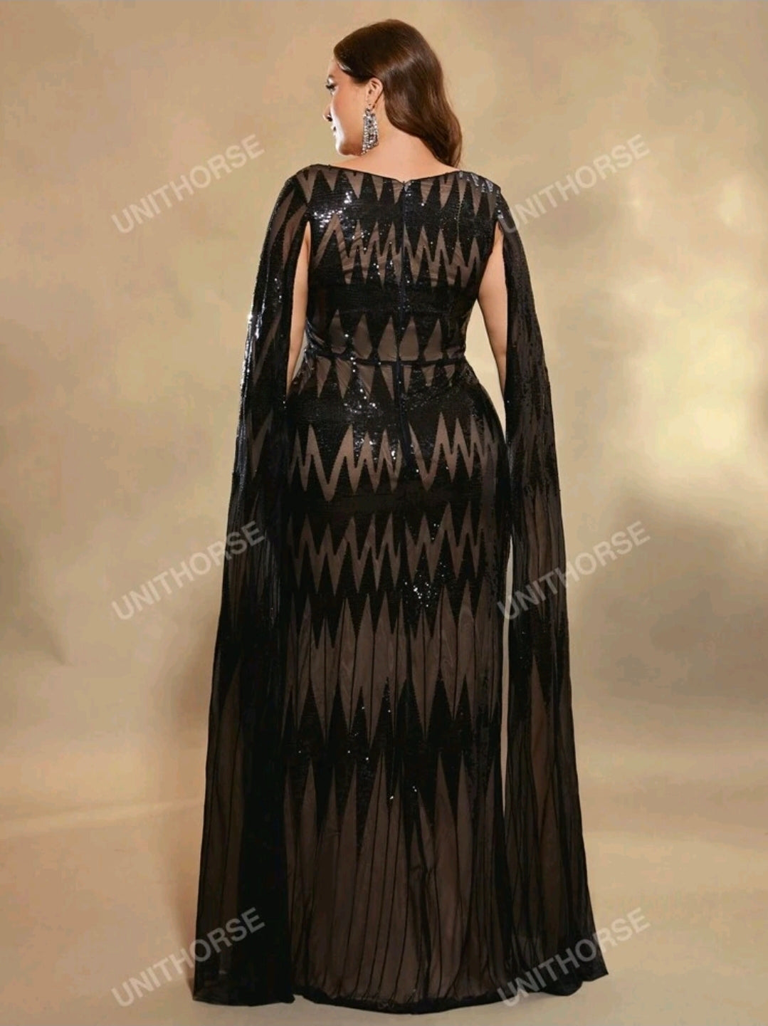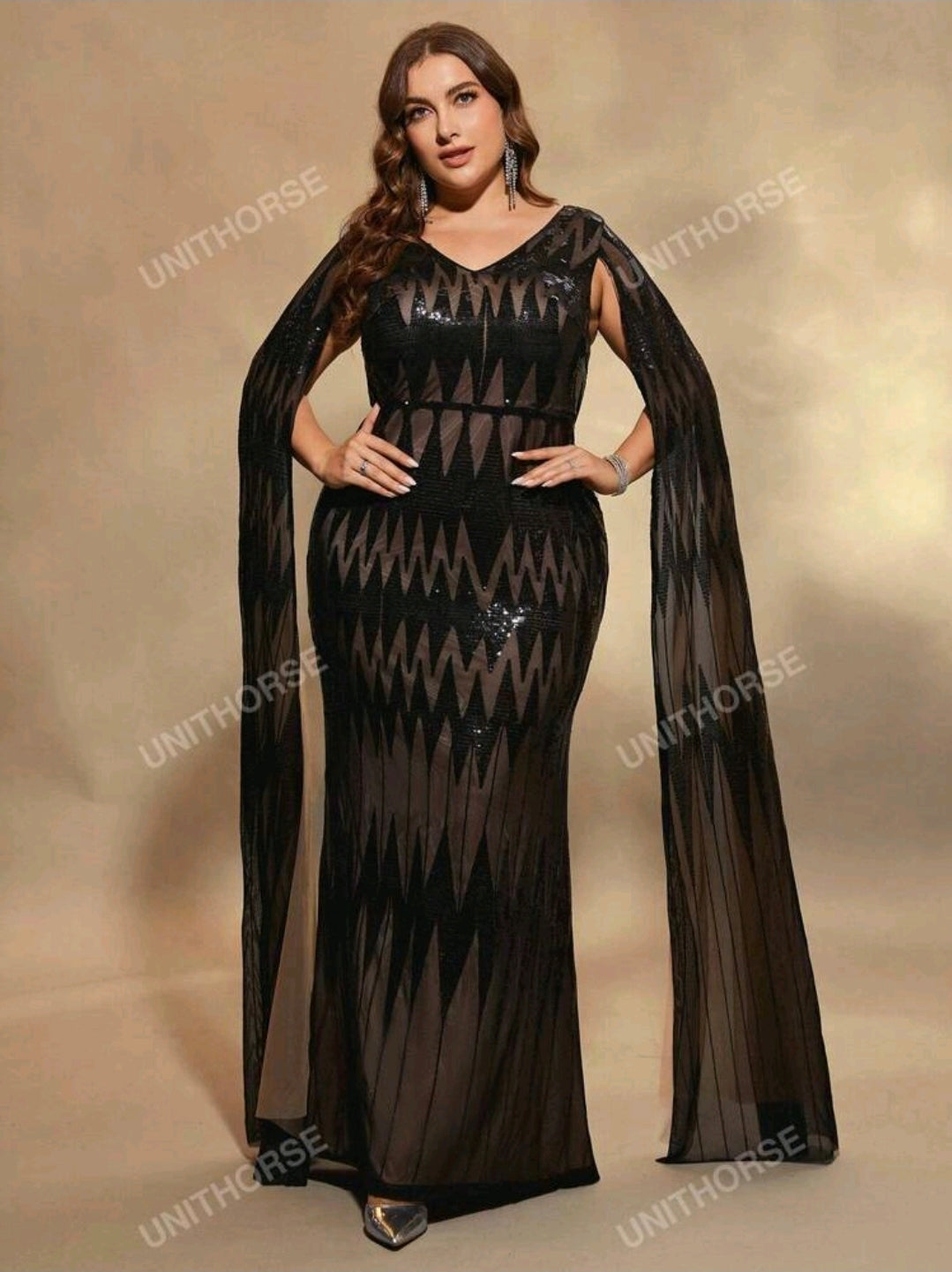 فستان فخم طويل و أكمام مفتوحة طويلة عصري مع خصر ضيق
