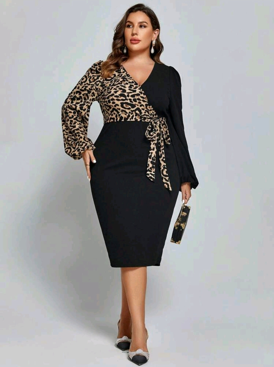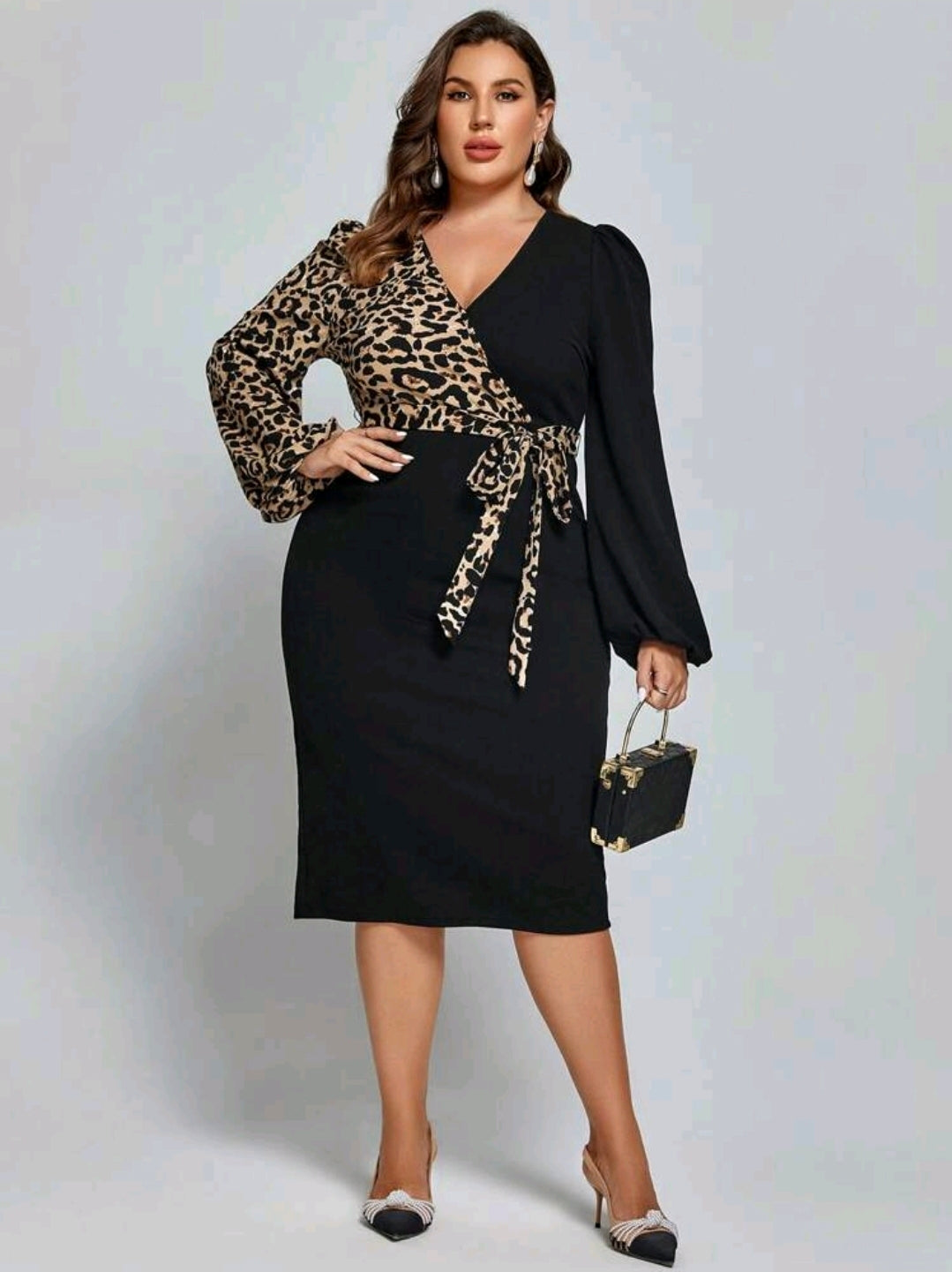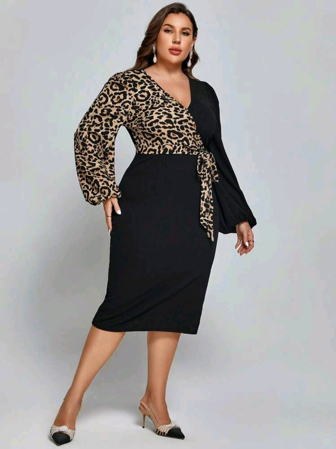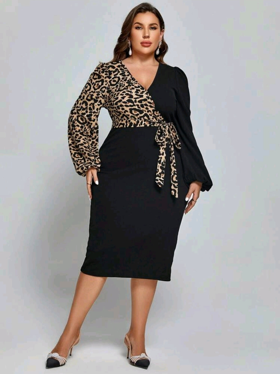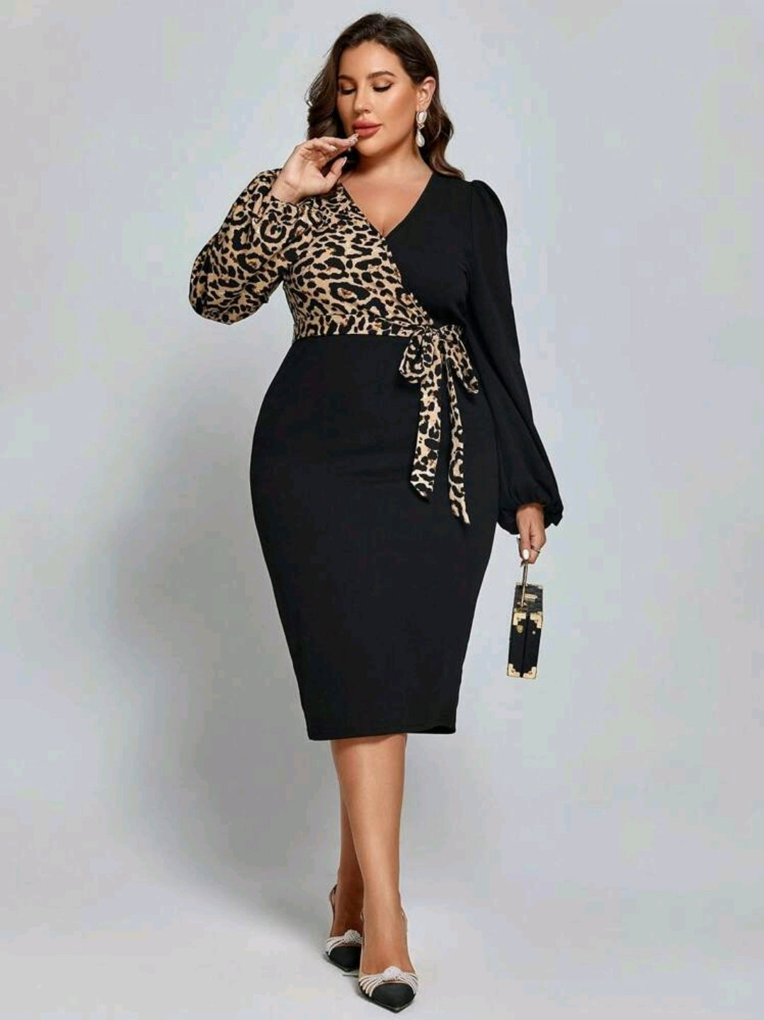فستان ضيق بأكمام منتفخة وحزام من جلد النمر