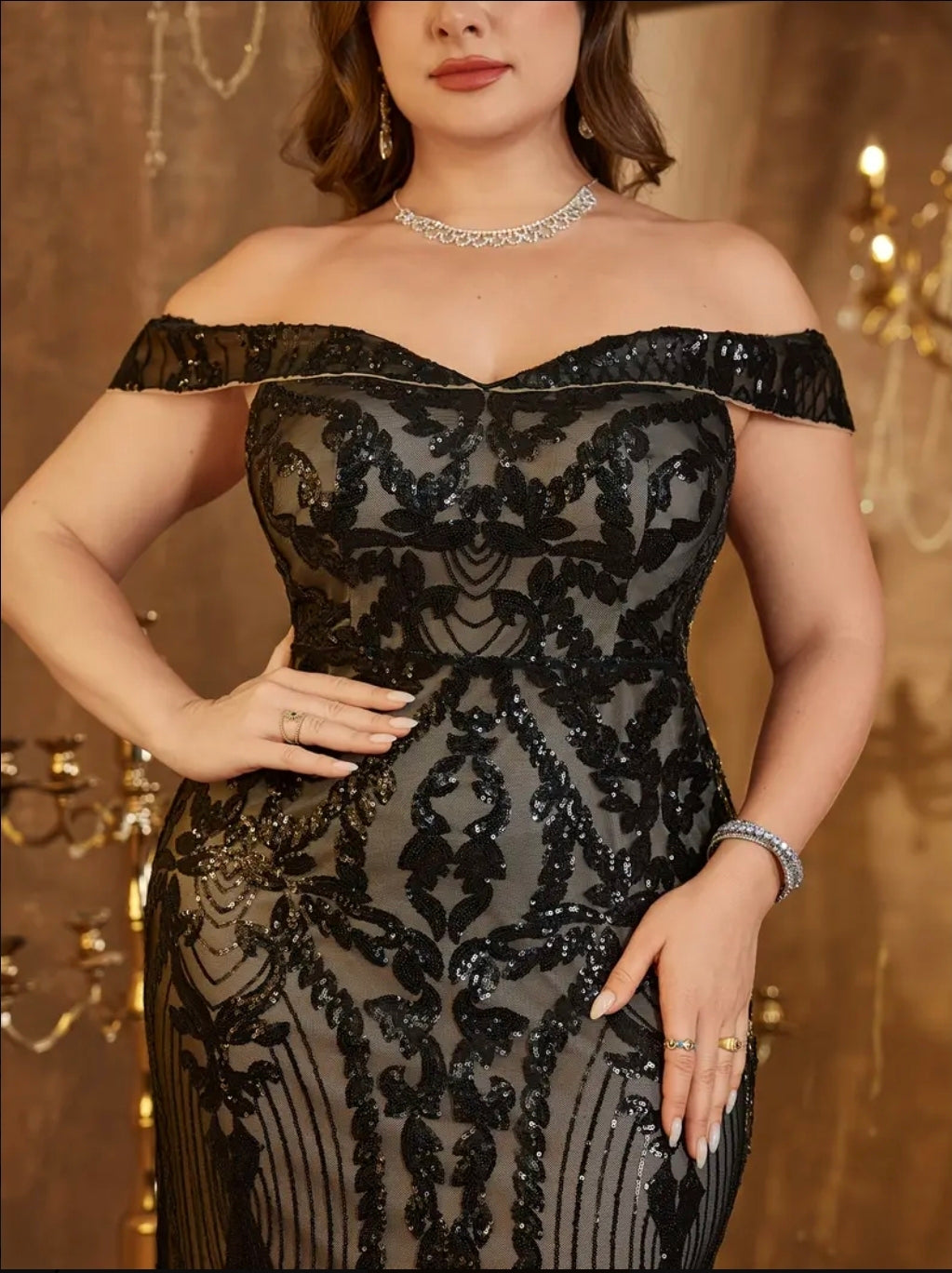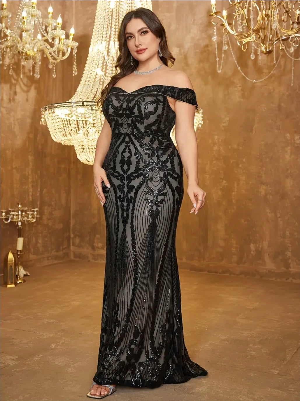 فستان سهرة أنيق بدون أكتاف للنساء - فستان سهرة طويل بدون أكمام بتفاصيل لامعة، مثالي مزين بترتر لامع | تصميم أنيق