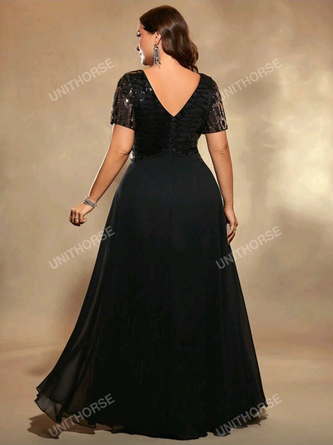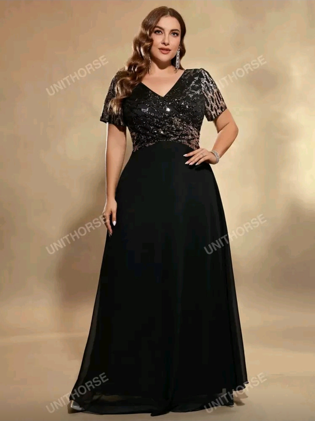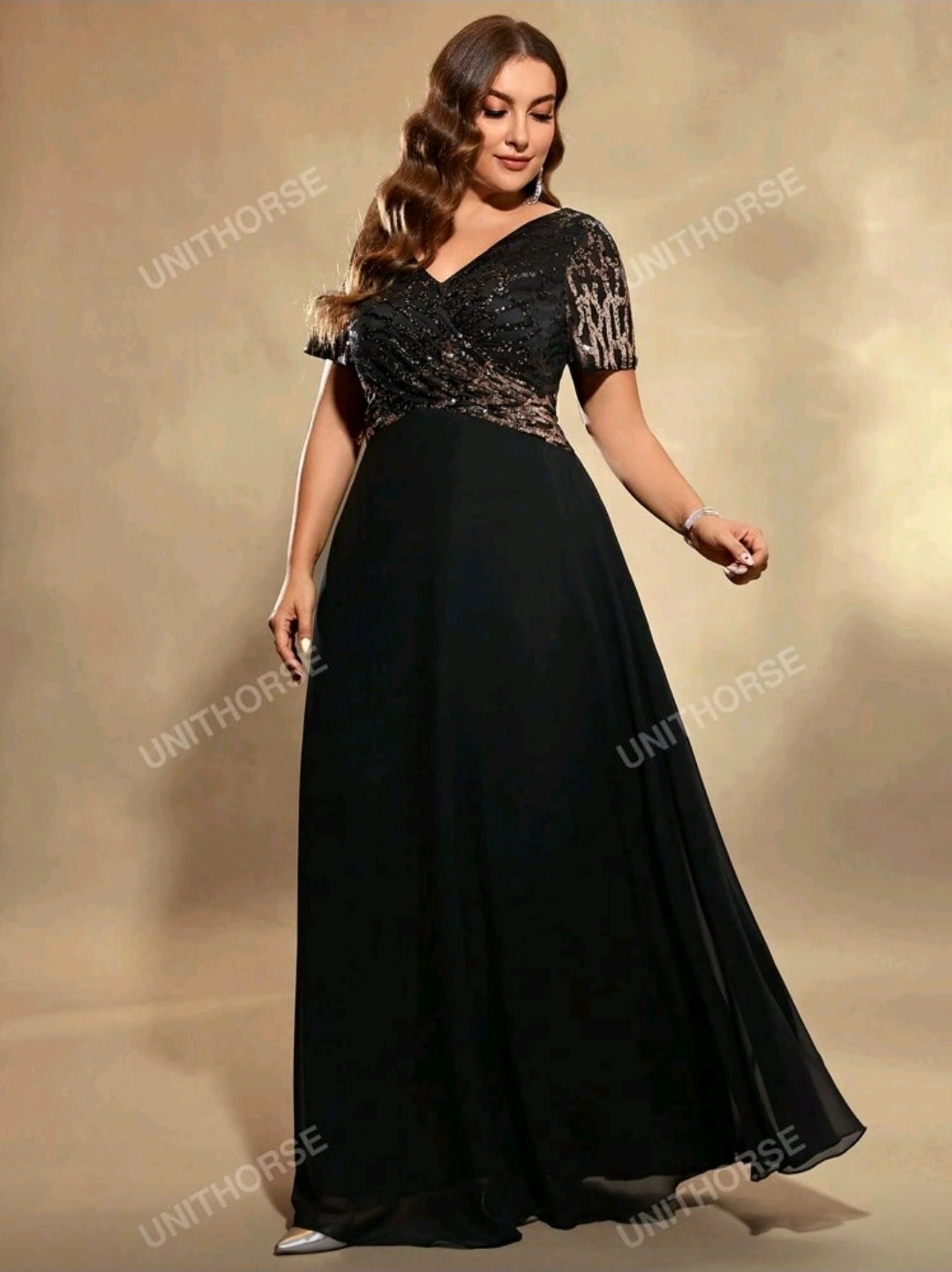 فستان سهرة شيفون أسود بمقاس كبير، أنيق لحفلات الزفاف، مناسب لحفلات العشاء