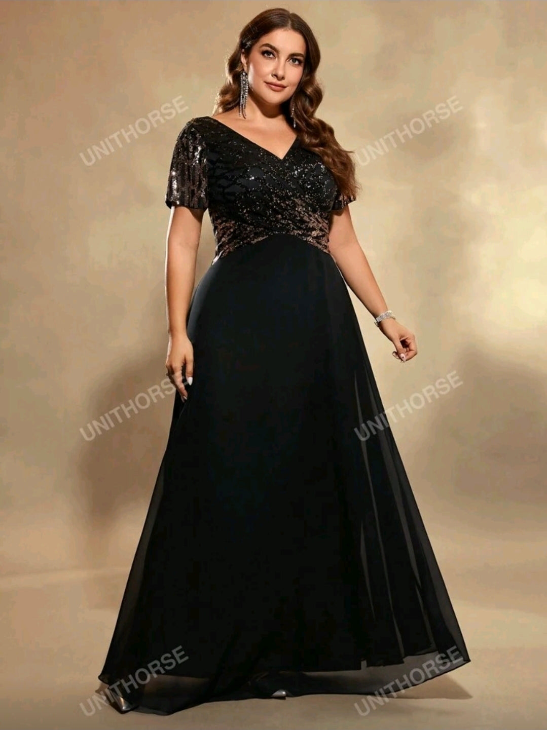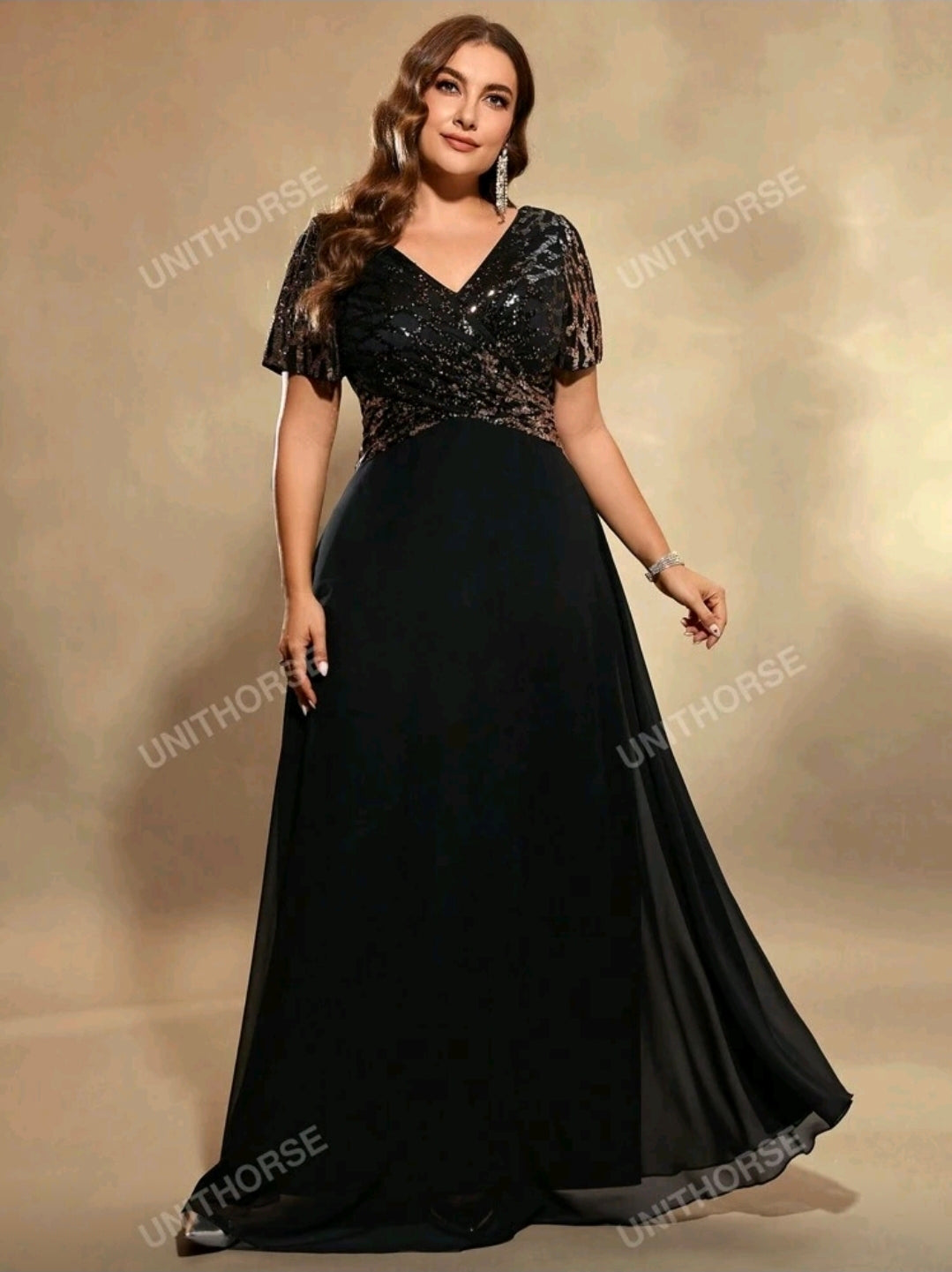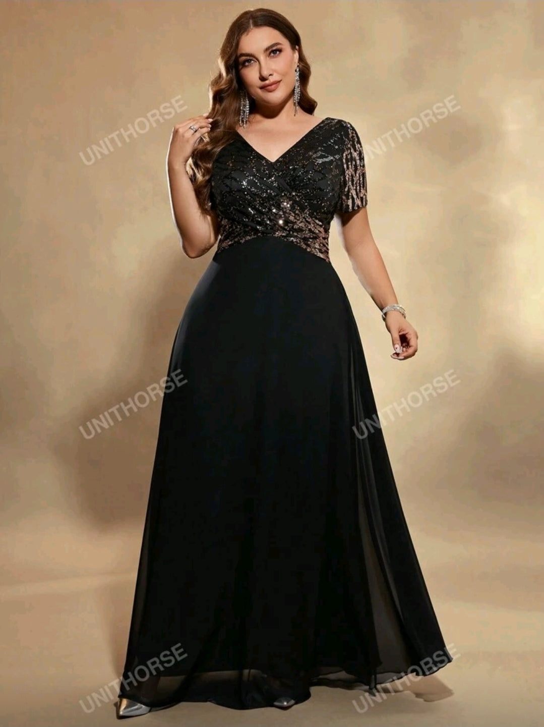 فستان سهرة شيفون أسود بمقاس كبير، أنيق لحفلات الزفاف، مناسب لحفلات العشاء