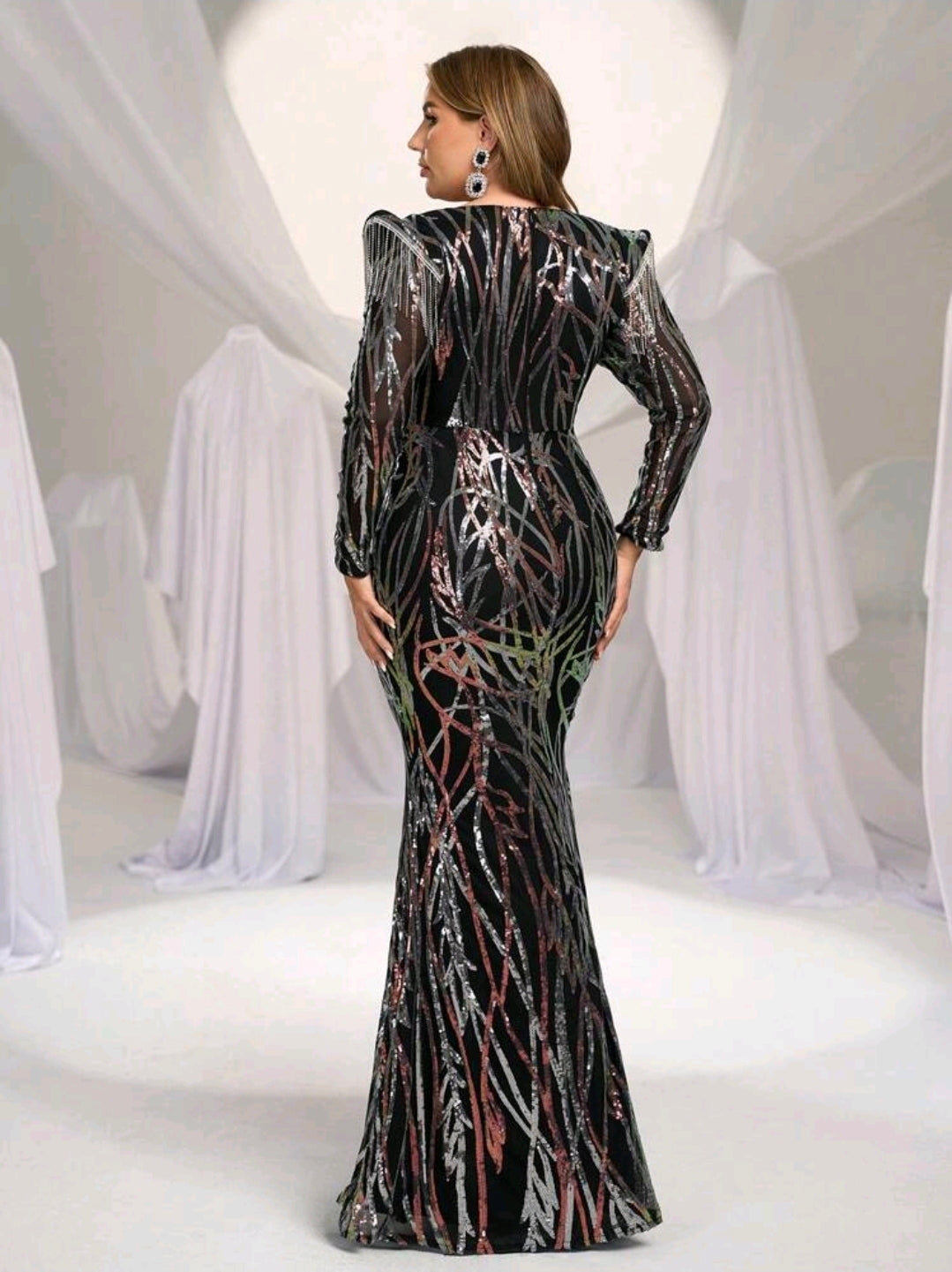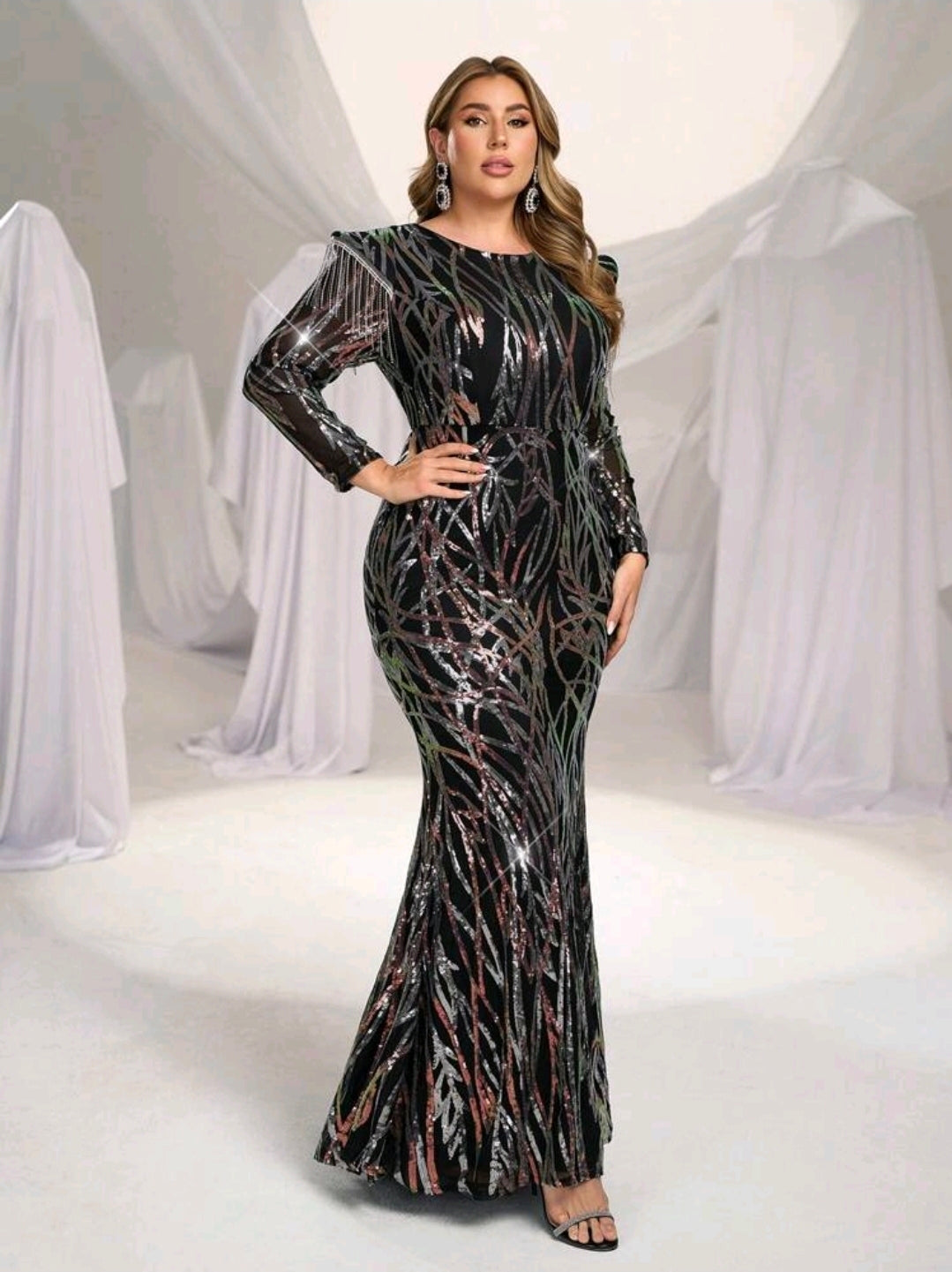 فستان سهرة فاخر بأكمام طويلة بتصميم حورية البحر ومزين بالترتر، مقاس كبير، فستان أنيق لحفلات الزفاف، فستان سهرة