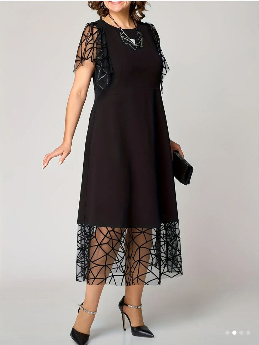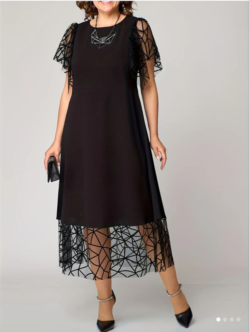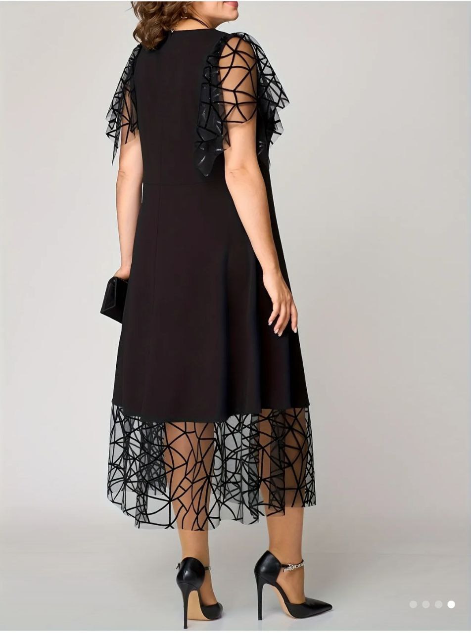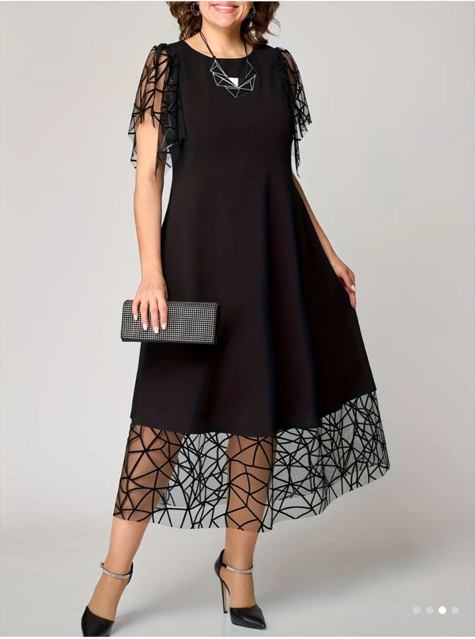 فستان أسود مزير بخطوط وأكمام قصيرة