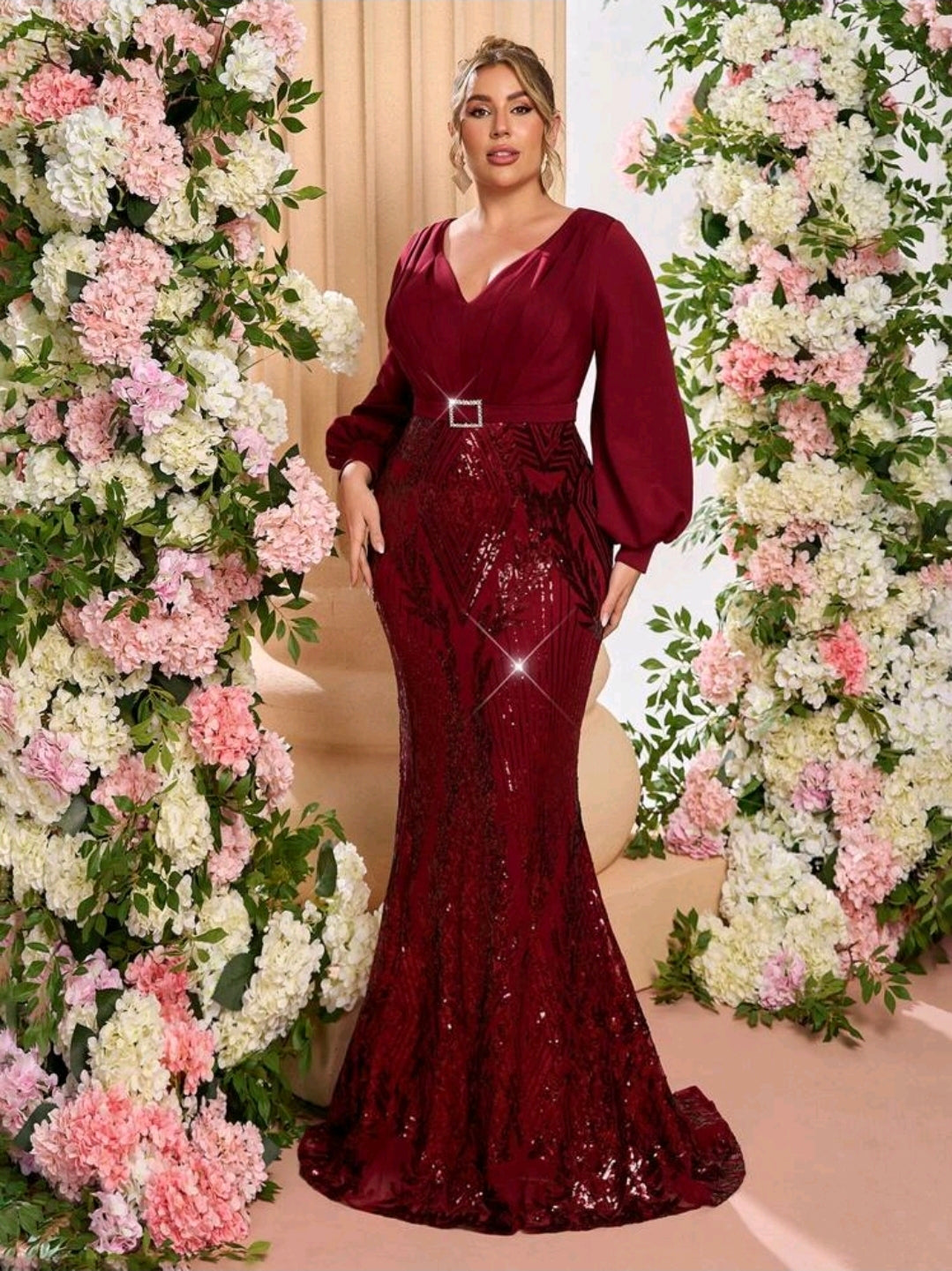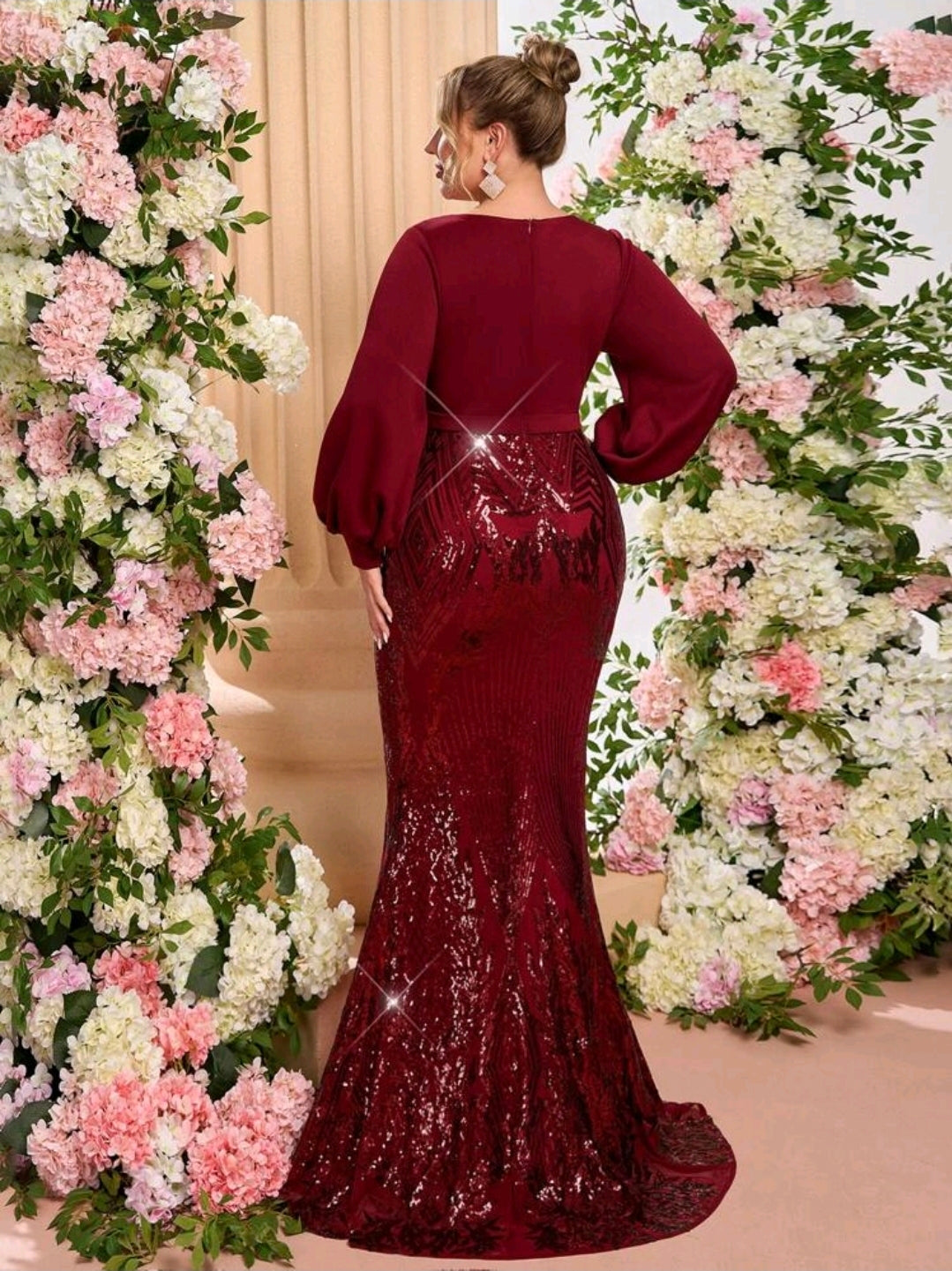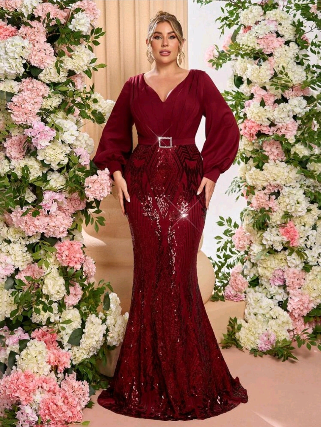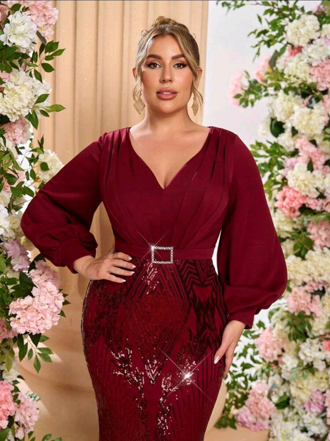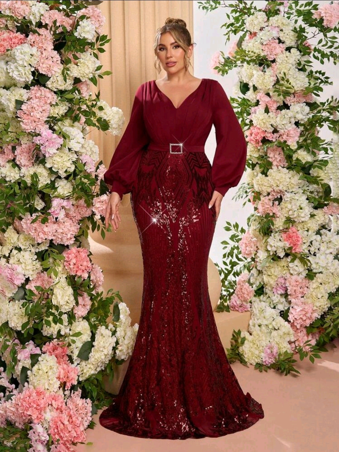 فستان سهرة أنيق باللون العنابي، مصنوع من