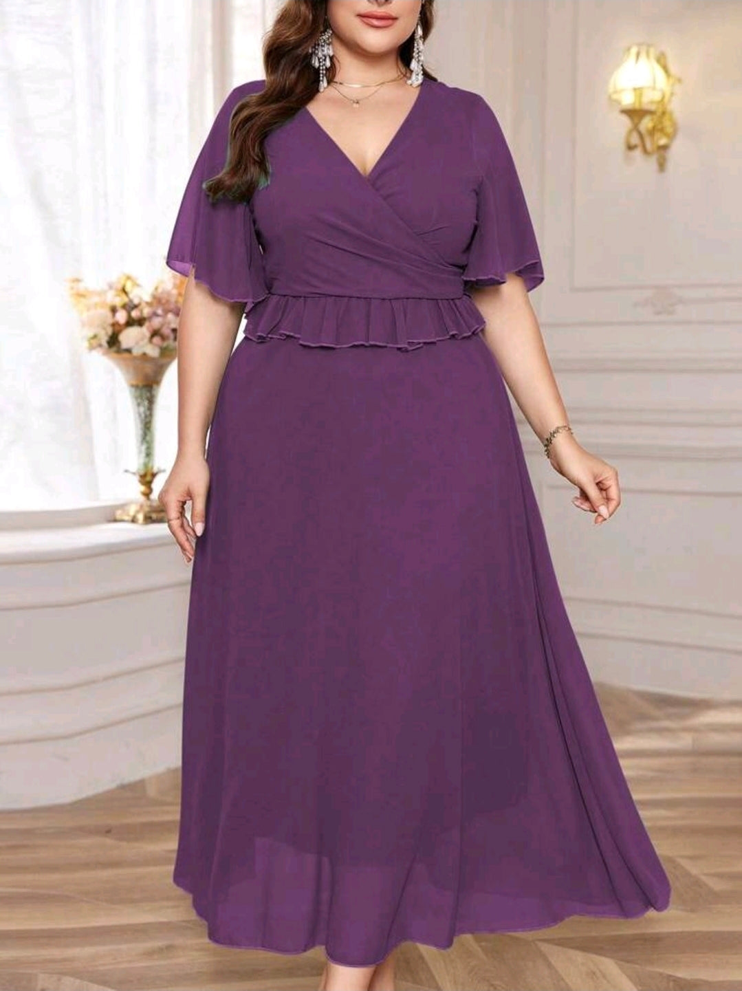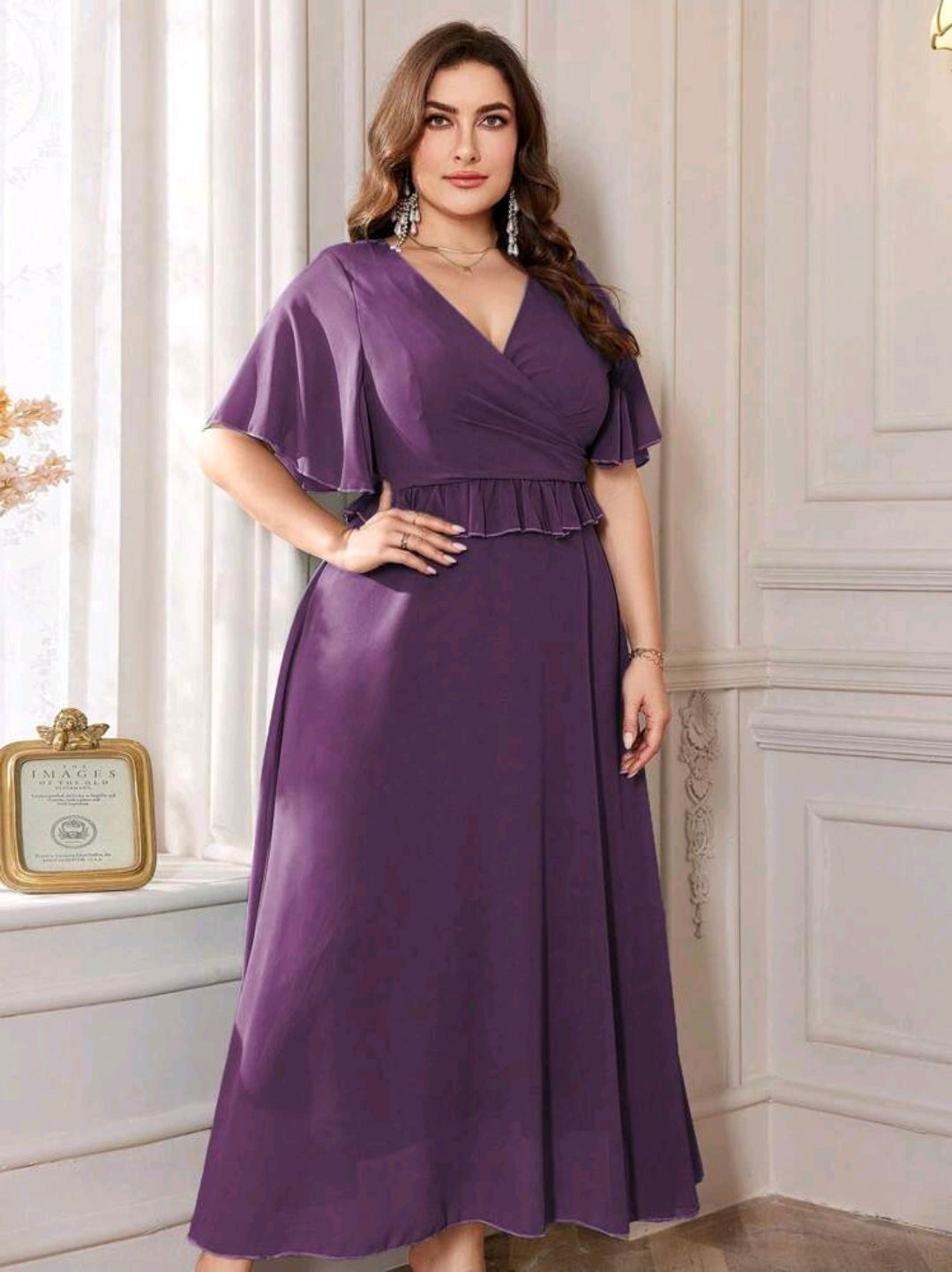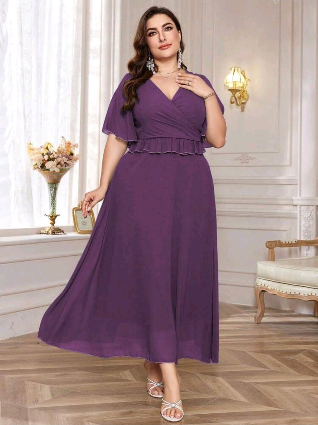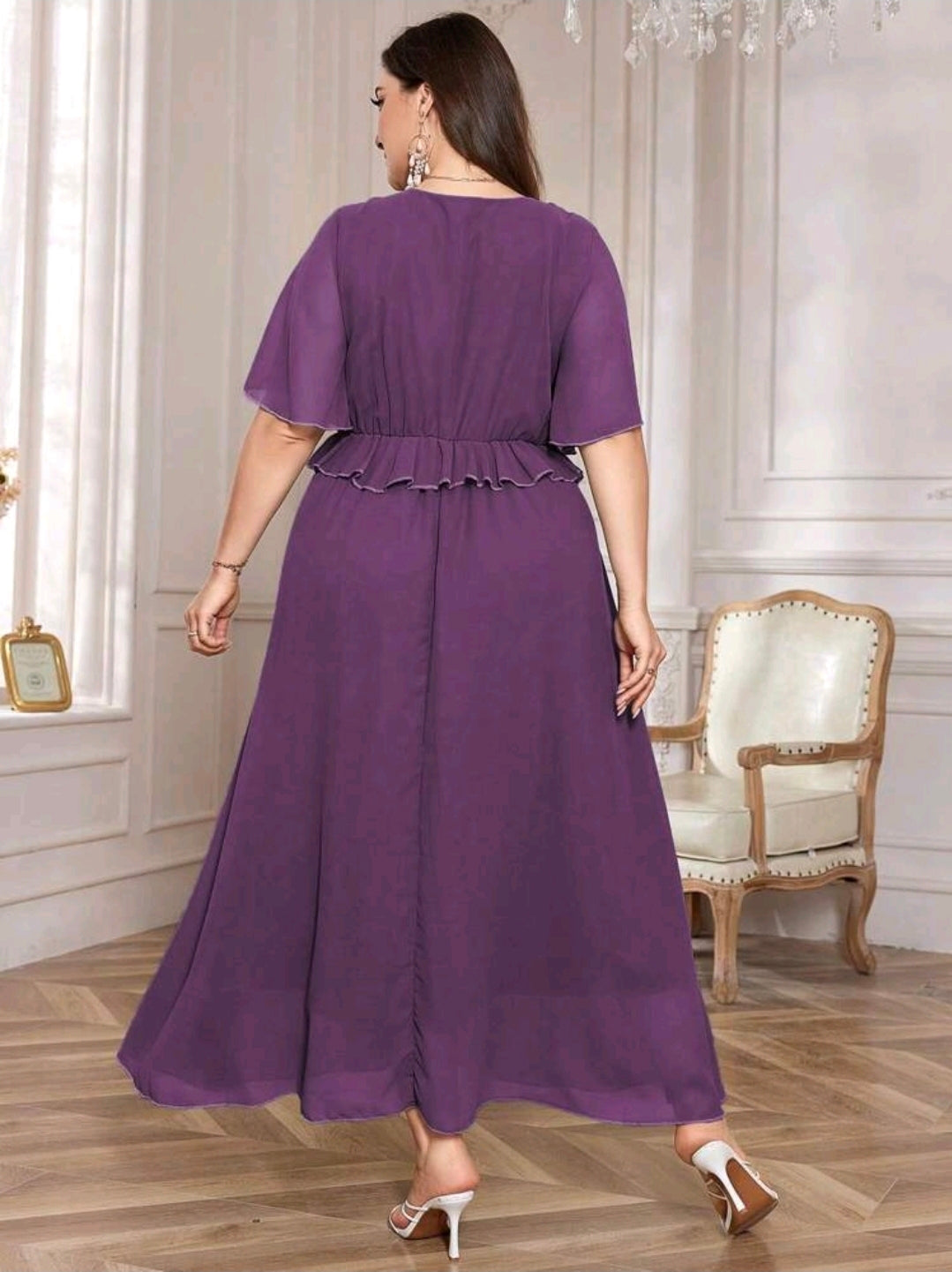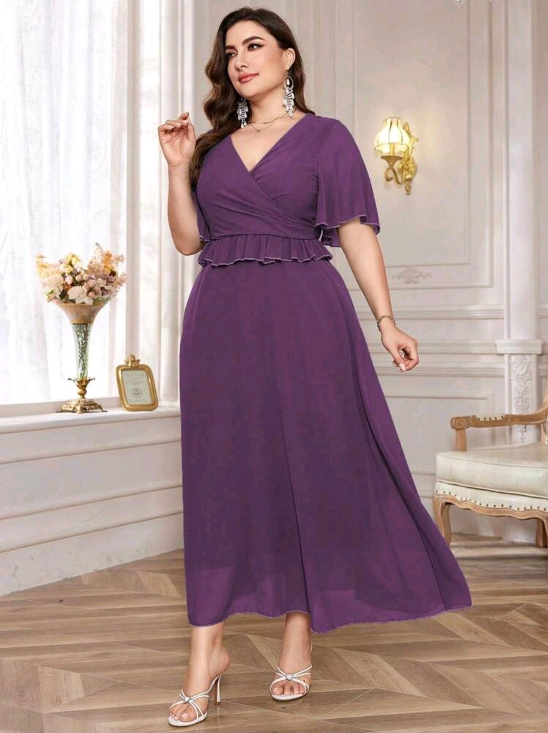 Vفستان لون بنفسجي بمقاسات كبيرة، برقبة على شكل حرف
